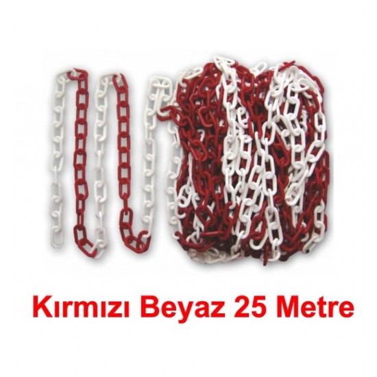Kırmızı-Beyaz Plastik Zincir 25 Metre, Otopark Malzemeleri